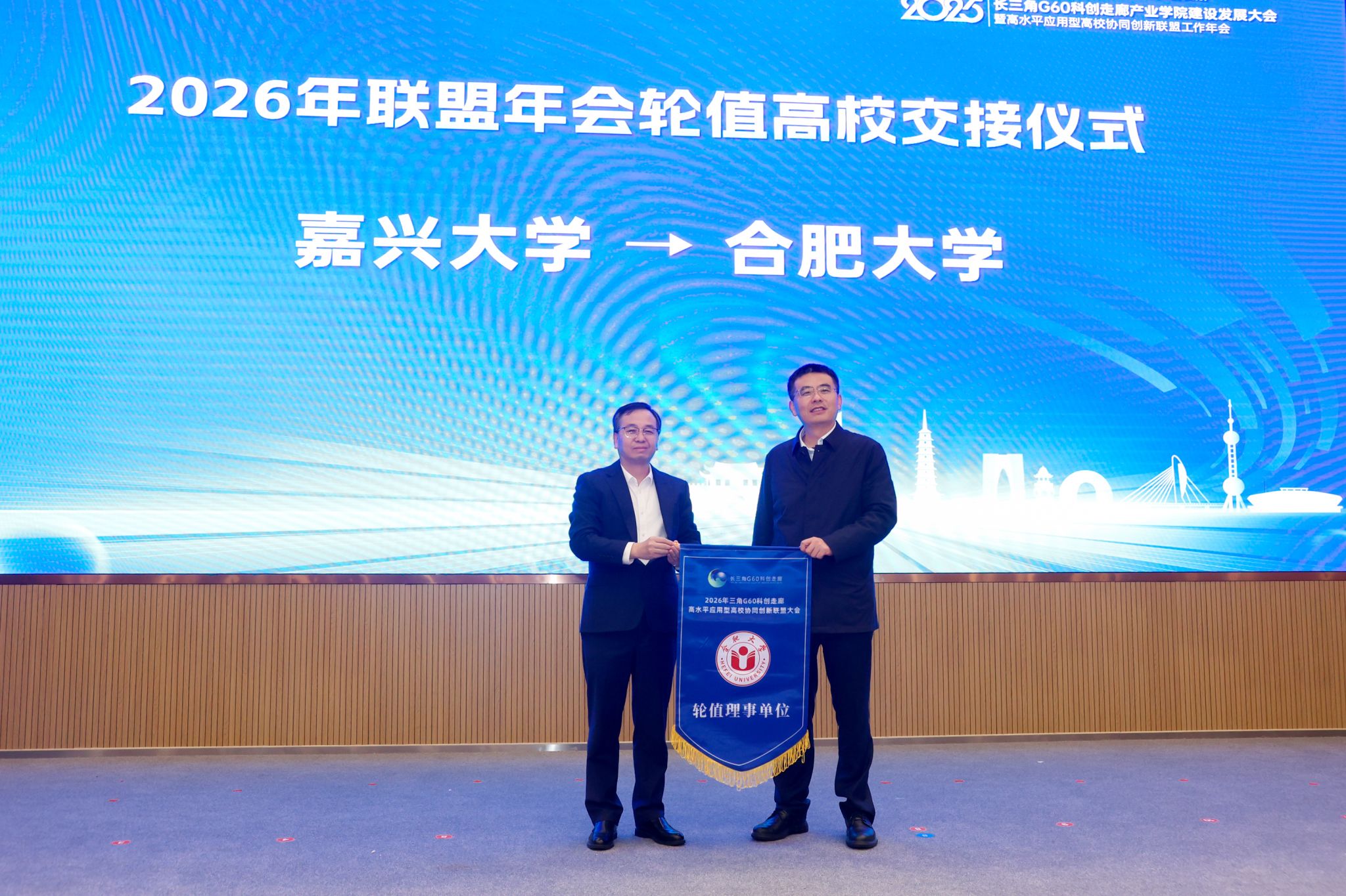 会上,梅德庆与任永进行联盟年会轮值高校交接,合肥大学成为2026年联盟轮值高校。任永代表2026年轮值高校发言,他表示,将以高度责任感扛起轮值使命,深化与各高校、企业的协同联动,凝聚创新合力、共享优质资源,为区域新质生产力发展注入强劲动能。