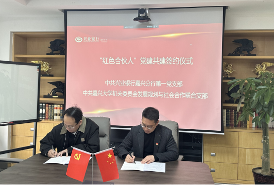 会上,发展规划与社会合作联合党支部与兴业银行嘉兴分行第一党支部签署了“红色合伙人”新一轮党建共建合作协议。