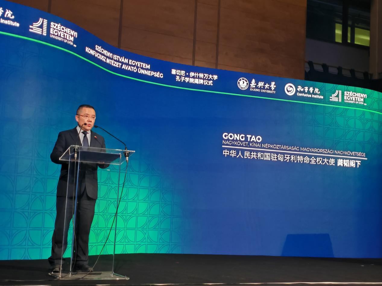 龚韬对两校合作共建的孔子学院揭牌表示祝贺。他指出,高新技术产业合作已成为中匈合作重点领域,该孔子学院独具“中文+新技术”特色,将有力促进“产学研用”一体化发展,为中匈教育和产业合作贡献更大力量。