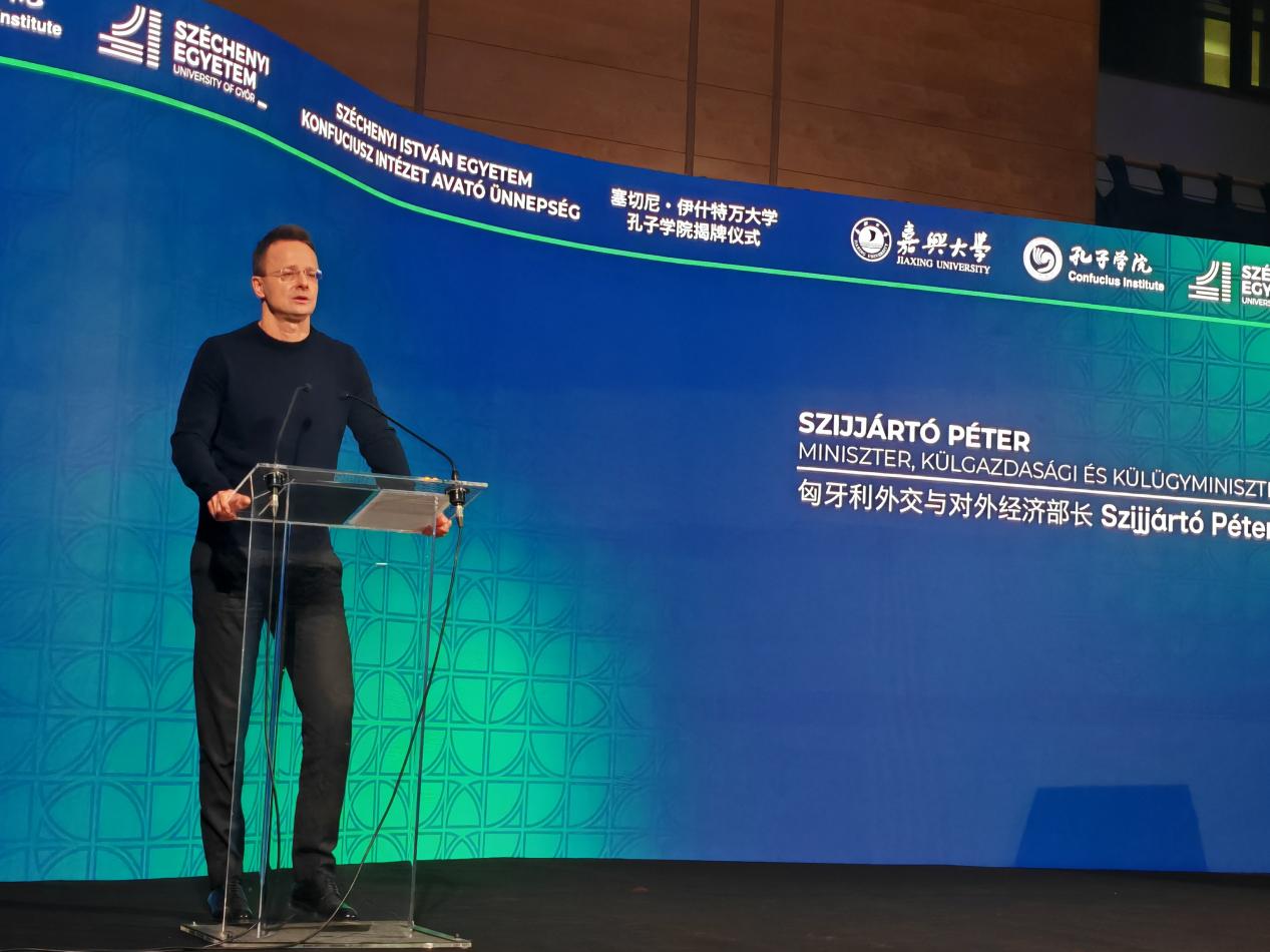 1月23日,嘉兴大学与塞切尼·伊什特万大学共建孔子学院揭牌仪式在匈牙利杰尔举行。匈牙利外交与对外经济部长西雅尔多·彼得、中国驻匈牙利大使龚韬、嘉兴大学校长梅德庆、塞切尼·伊什特万大学校长巴林特·菲莱普及副校长埃斯特·卢卡奇出席仪式,中国国际中文教育基金会副理事长、秘书长赵灵山通过视频形式予以祝贺。